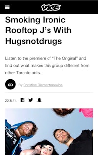 He later began honing his own musical style as a producer and testing his songs as a solo performer and DJ at various underground raves and clubs around Toronto. Through this scene he met new bandmates and became the lead producer and DJ for the live electronic band HUGSNOTDRUGS.